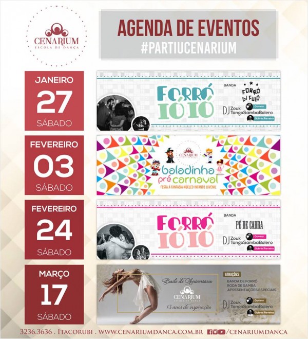 LISTA BÔNUS : http://conteudo.cenariumdanca.com.br/forro27-01. O primeiro Forróióió do Ano já tem data e primeira música confirmada: parabéns especial para a Profª Tassiana Leivas Bastos! Agende-se! Será nesse sábado às 22h, aqui, na Cenarium. ::: Atrações • Banda
