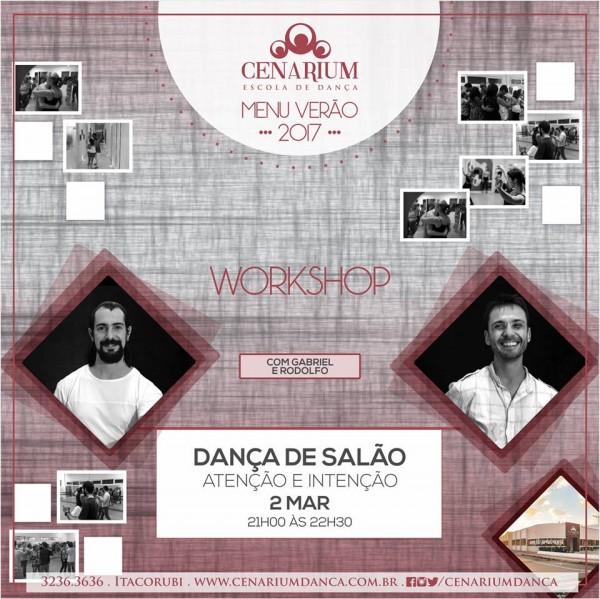 Atenção e Interação! Esse é o tema do nosso Workshop de Dança de Salão com o queridos professores Gabriel e Rodolfo. Vamos? • Dança de Salão Atenção e intenção 02/03 – Quinta-feira, das 21h às