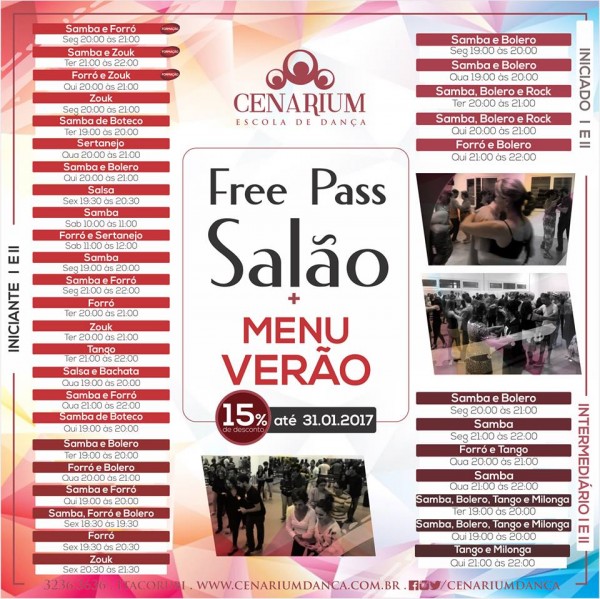 A Cenarium aguarda você com o Free Pass Salão e o Menu Verão juntinhos! E é bem simples... Você adquire o Free Pass Salão Iniciante a partir de R$ 150,00* ou Free Pass Salão
